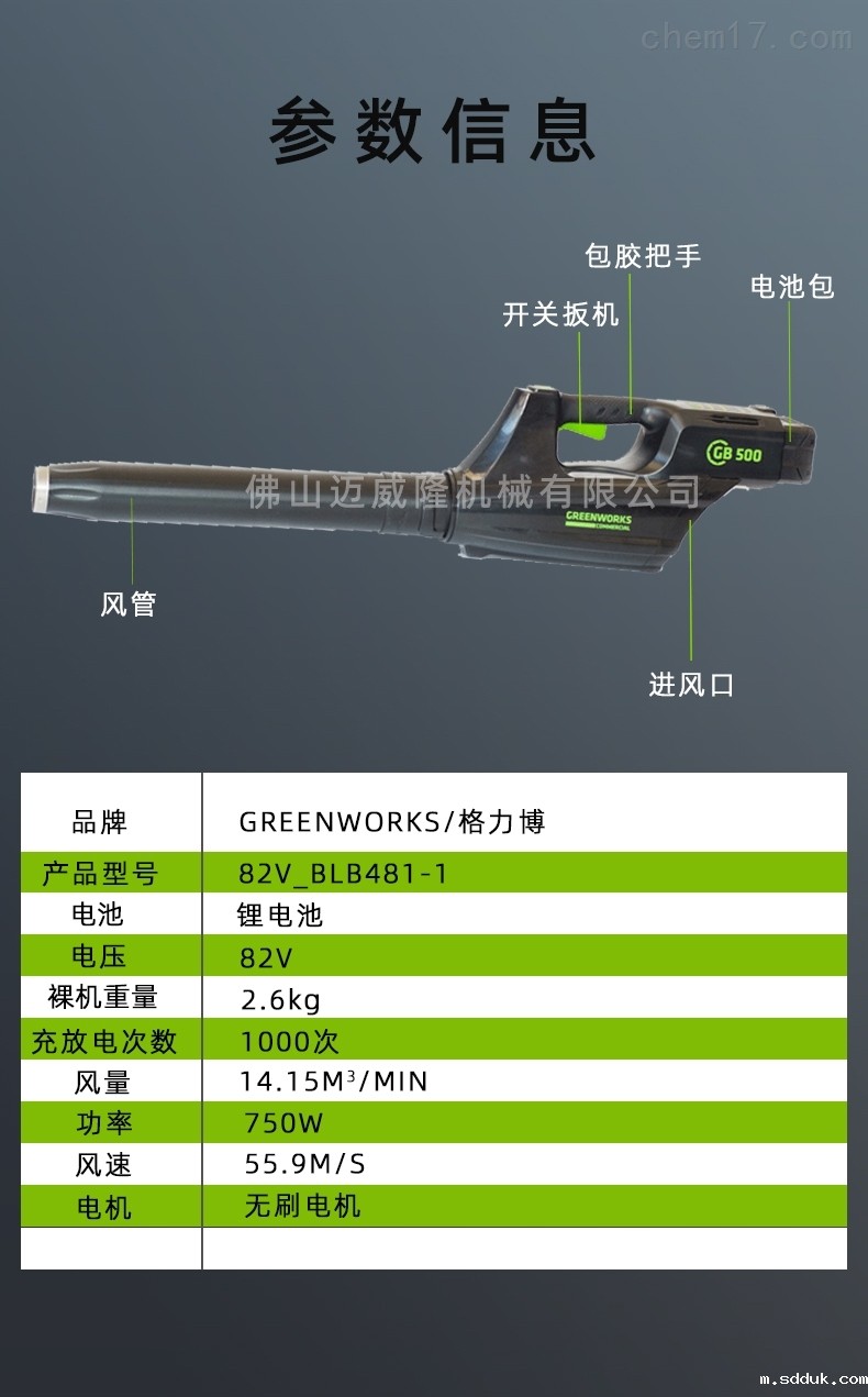 Glebe便携式吹风机blb481-1锂吹灰器82v吹雪器森林灭火器产品参数:品牌:greenworks/Glebe产品型号:82v_blb481-1电池:锂电池电压:82v裸机重量:2.6kg充放电次数:1000倍风量:14.15m3/min功率:750W风速:55.9m/s电机:无刷电机